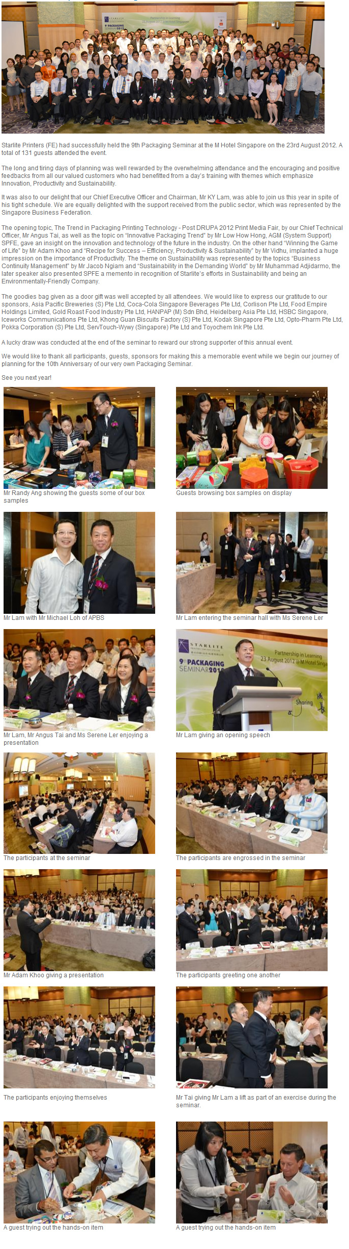 Highlights of Starlite Packaging Seminar–Partnership in Learning 2012