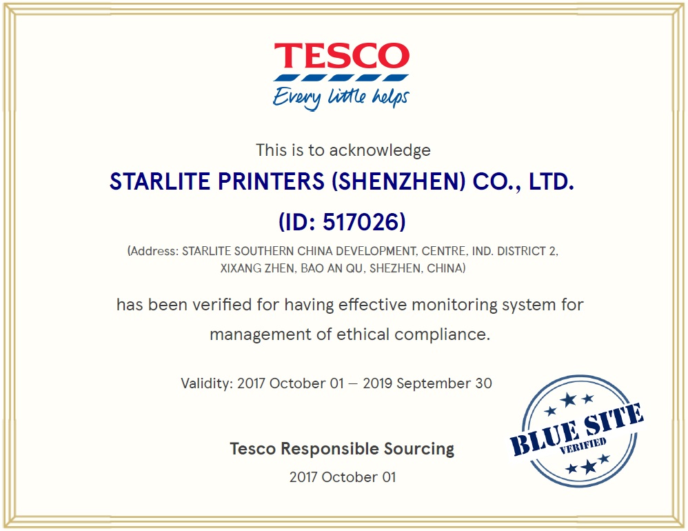 星光深圳获Tesco评为"Blue Site"